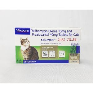7. Virbac MILPRO Milbemycin Oxime 16mg and Praziquantel 40mg Tablets for Cats Above 2kg (Each Tablet Wise)